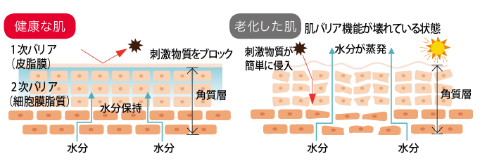 加齢により、バリア機能は低下し、乾燥肌・敏感肌・
