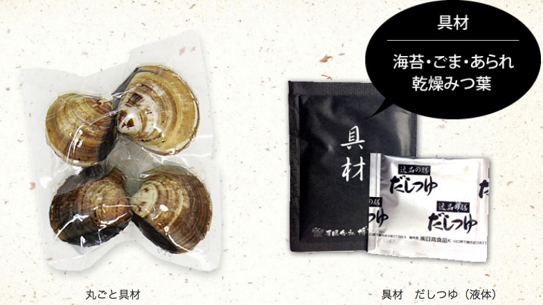 1パックに、まるごと具材+具材+出汁つゆ(液体)がセットになっています。